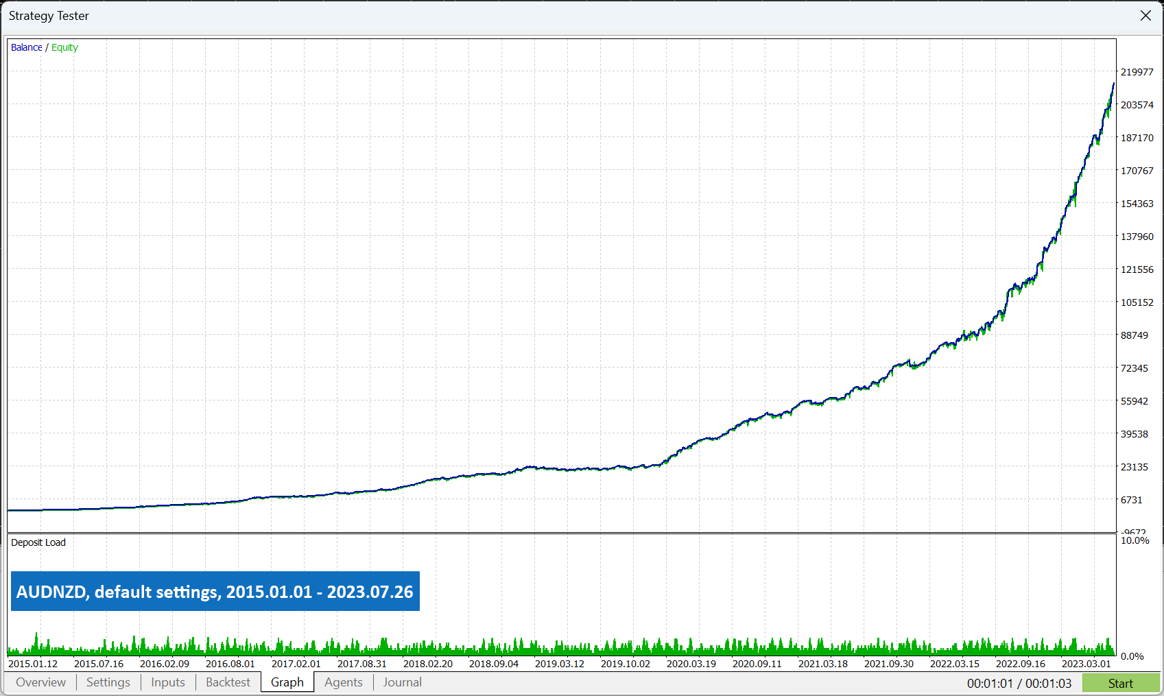 过去的测试员和现场表演都不能保证未来的回报。实时风险设置不应基于回测。从长远来看,低风险交易可能更有利可图。默认 EA 风险设置相当低,不应增加太多。