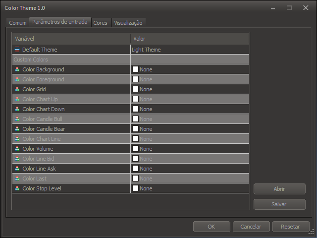 A simple indicator to customize the colors of the current chart, with standard customization options of "Dark Theme" or "Light Theme", or even the possibility to change the colors individually of each visual element of the chart through input parameters.