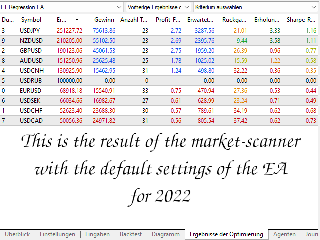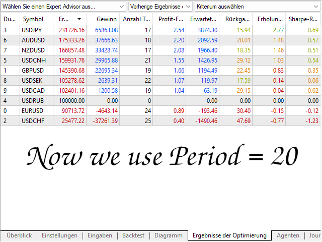Since the market situation will change over time, it is necessary to adjust the parameters of the EA from time to time. Therefore I recommend to recalibrate the parameters of the EA every week or at least every month based on a complete optimization over the last months.