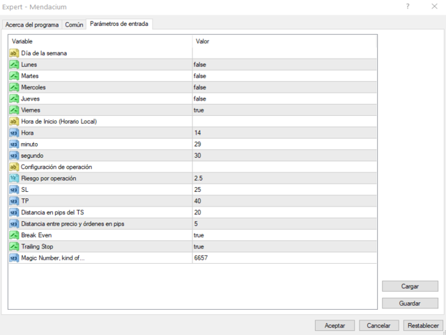 - Distancia entre precio y órdenes en pips -> distancia en pips de las ordenes pendientes